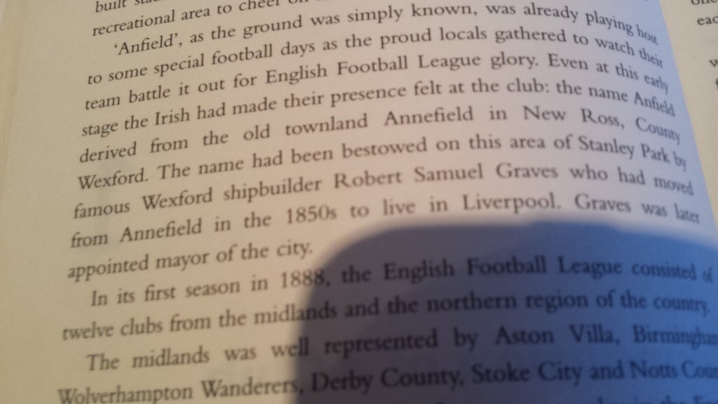 ‘…Anfield derived from the old townland Annefield in New Ross, County Wexford. The name had been bestowed on this area of Stanley Park by famous Wexford shipbuilder Robert Samuel Graves who had moved from Annefield in the late 1850s. Graves was later appointed mayor of the city.